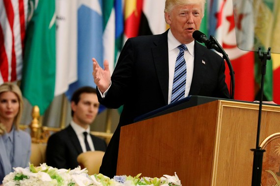 Trump did condemn “extremism.” But speaking in the country he has accused of complicity in 9/11, he did not once pointedly suggest that any Middle East regime except Iran’s might bear any responsibility for that extremism. Rather than suggesting, as both Obama and George W. Bush did, that the authoritarianism and corruption of Arab governments might have helped spawn groups like al-Qaeda and ISIS, Trump reversed the causality. The Middle East’s “untapped potential” he declared, “is held at bay by bloodshed and terror.” And in so doing, he endorsed the agenda that Saudi Arabia and other Sunni Arab dictatorships have been urging for years: Help us confront Iran and kill “terrorists” (which includes anyone who opposes our hold on power) and all will be well. In his speech in Riyadh, Trump didn’t even use the phrase that he endlessly excoriated Clinton and Obama for avoiding: “radical Islamic terrorism.” He talked about “extremism.” But never used it as an adjective to modify the noun “Islam.”