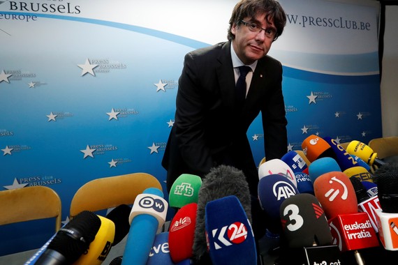 In his first formal appearance since Spain’s central government moved to impose direct rule over the Catalan regional government last week, deposed Catalan President Carles Puigdemont delivered an address in Brussels Tuesday in an apparent bid to explain what the Catalan independence movement does next. Flanked by five of his fellow ousted regional lawmakers, Puigdemont announced he would respect the results of the snap elections called by Madrid for December 21, and clarified that while his return to Catalonia would depend on certain “guarantees” of a fair trial from the Spanish government, he would not be seeking to claim asylum in Brussels as some have speculated.